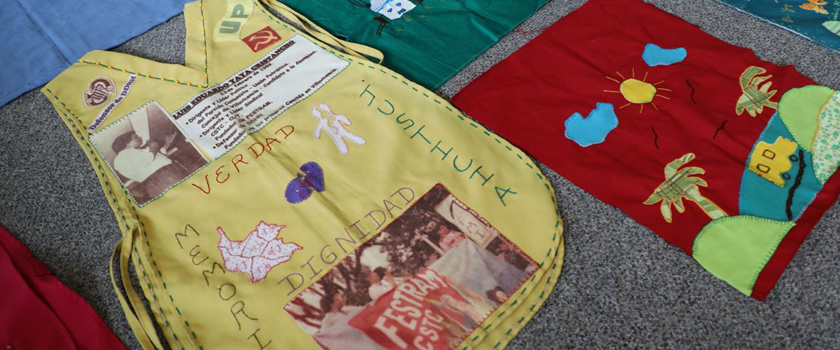 Historias alegres y tristes reflejadas en retazos de tela fueron expuestas en el auditorio de la JEP que ha sido el escenario de audiencias y el lugar en el que las víctimas del conflicto armado han exigido su derecho de conocer la verdad plena y de contar con garantías de justicia, reparación y no repetición.